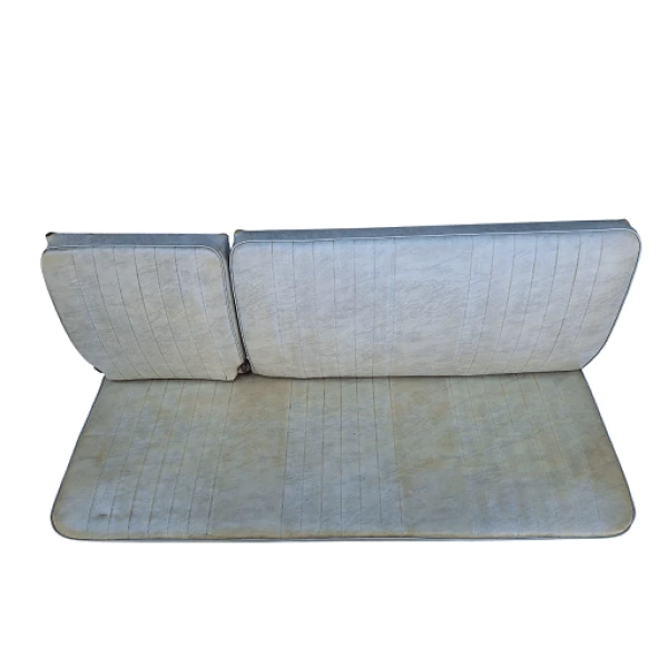 A parte do encosto estava encapada, por isso preservou a cor original com mais fidelidade em relação ao assento que não foi encapado
