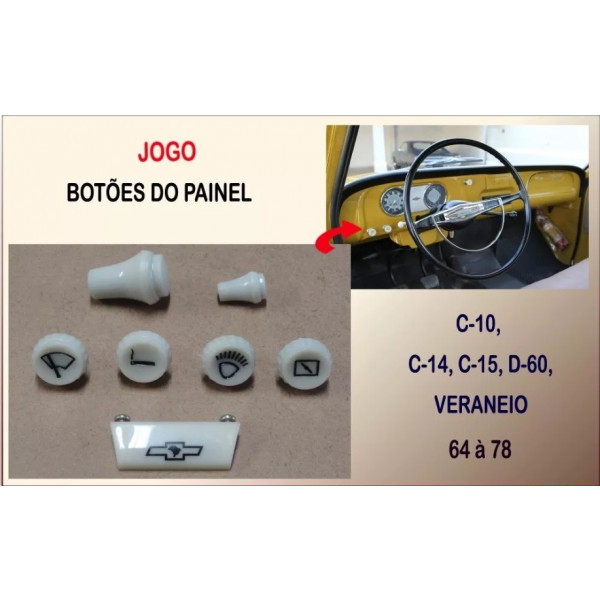 Jogo de Botões do painel para C-10, C-14, C-15, D-60 e Veraneio 1964 a 1978