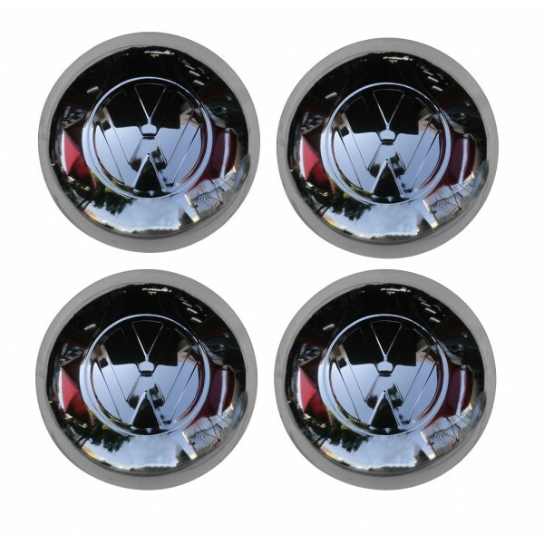 Jogo de Calotas para Roda 5 Furos com Logo Grande para Volkswagen Fusca / Kombi / Karmann Ghia (Rodas de 05 Furos)