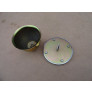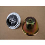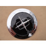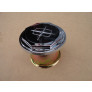 O emblema central sextavado é em plástico cromado, a parte de trás do emblema e o parafuso é de metal. O copinho é de metal, com rosca já embutida