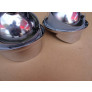 Em metal (aros, abas e refletores) e lente em vidro