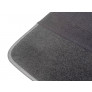 Em tecido na maior parte da peça e ''carpet'' na faixa inferior