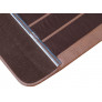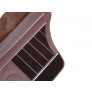 Parte central com acabamento vertical em tecido, na cor marrom escuro