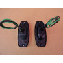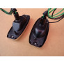 Carcaças traseiras com aros de metal cromados, lentes em vidro e soquetes