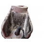 Carcaça em plástico, sem quebrados, porém com uma pequena marca de derretido próximo ao local de encaixe do soquete da lâmpada