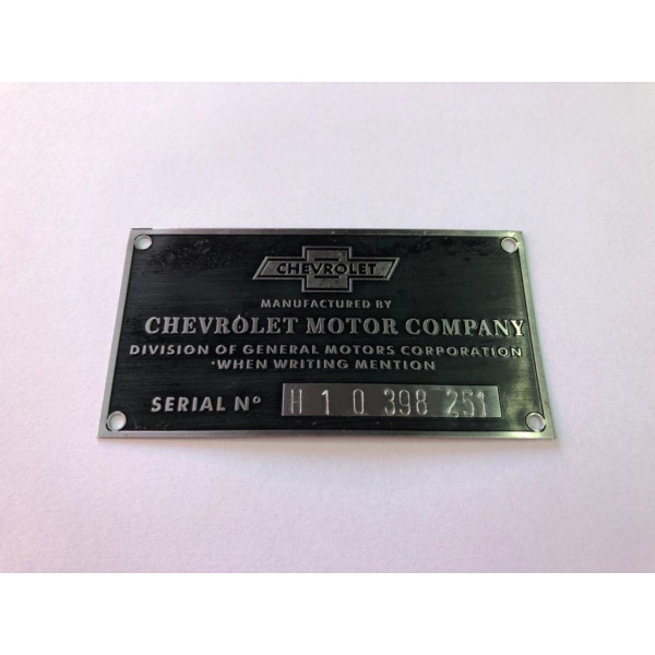 Plaqueta Chassi de Identificação para Chevrolet 3100, 3600, 6400 e 6500 1954 à 1955 Boca de Bagre, Boca de Sapo 1947 à 1953