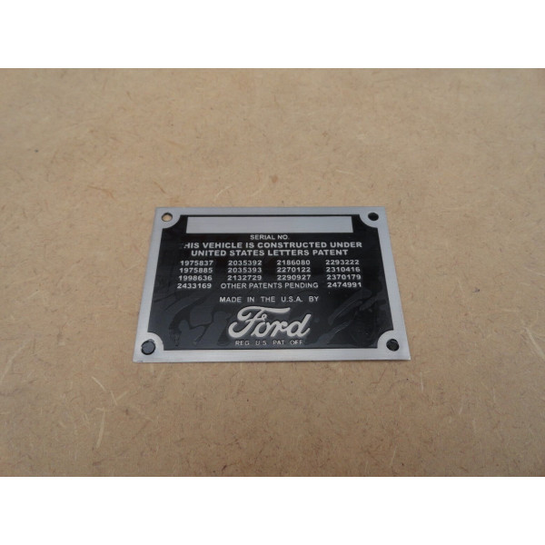 Plaqueta de Identificação do Chassi para Ford F-1/F-8 1948 a 1952