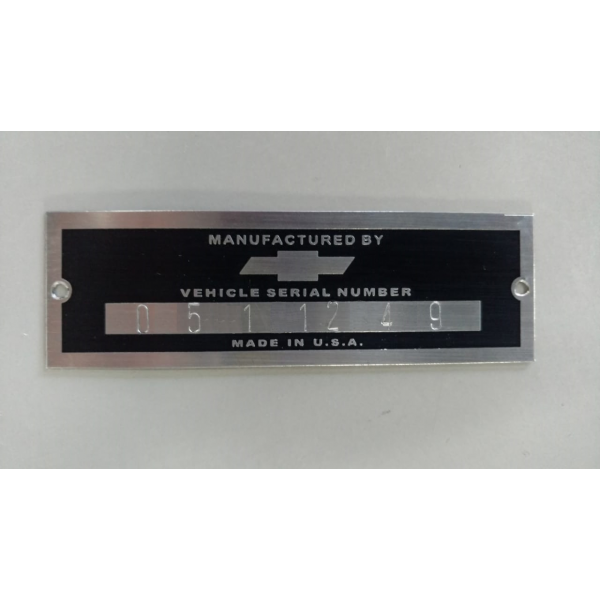 Plaqueta de Identificação ''MANUFACTURED BY VEHICLE SERIAL NUMBER CHEVROLET'' para Chevrolet Importados da Década de 30, 40, 50, 60...