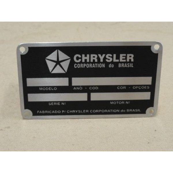 Plaqueta de identificação de carroceria Chrysler p/ Dodge Polara, Charger, Dart
