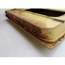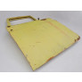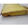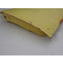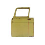 Com uma amassado na borda vertical frontal e traseira, próximo ao local das dobradiças e no lado oposto, próximo ao local da fechadura