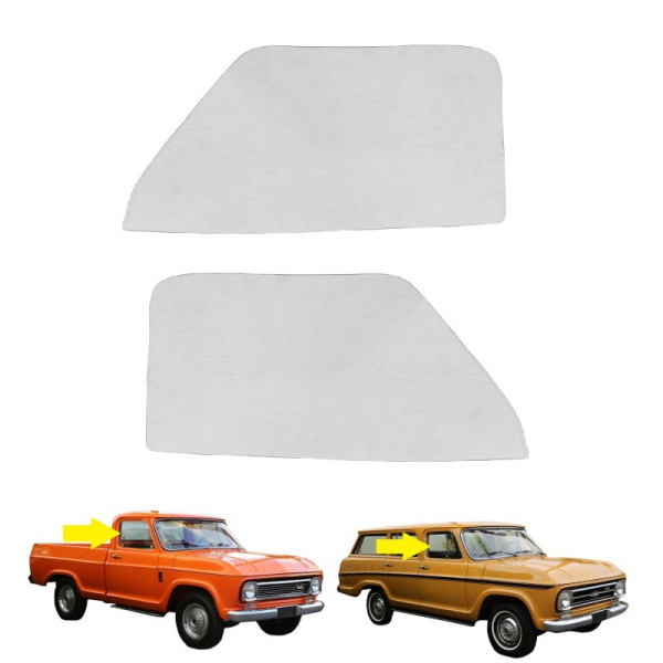 Par de Vidros de Porta Dianteiro Modelo Inteiriço (NÃO utiliza quebra vento) para Chevrolet C-14 / C-15 / C-10 / A-10 / D-10 1964 a 1985
