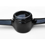 Com botão novo, em plástico, de reprodução recente, também na cor preta